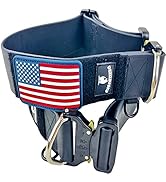 This 2-inch wide tactical dog collar is engineered for medium to large dogs, featuring an adjustable fit from 16 to 25 inches. Crafted with double-thick nylon and a heavy-duty metal buckle, it ensures durability and security for powerful dogs. Reflective stitching boosts nighttime visibility, while a sturdy control handle provides enhanced grip for training and everyday walks. The collar includes a customizable nameplate and a USA flag patch, blending military-grade toughness with personalized style.