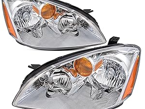 The JSBOYAT Halogen Headlight Assembly is a premium, vehicle-specific replacement set for 2005-2006 Nissan Altima models. Featuring durable, IP65-rated polycarbonate housing, micro-prism reflectors for enhanced brightness, and a plug-n-play design requiring no modifications, this pair of black housing headlights with amber reflectors ensures reliable, weatherproof performance and improved nighttime visibility.