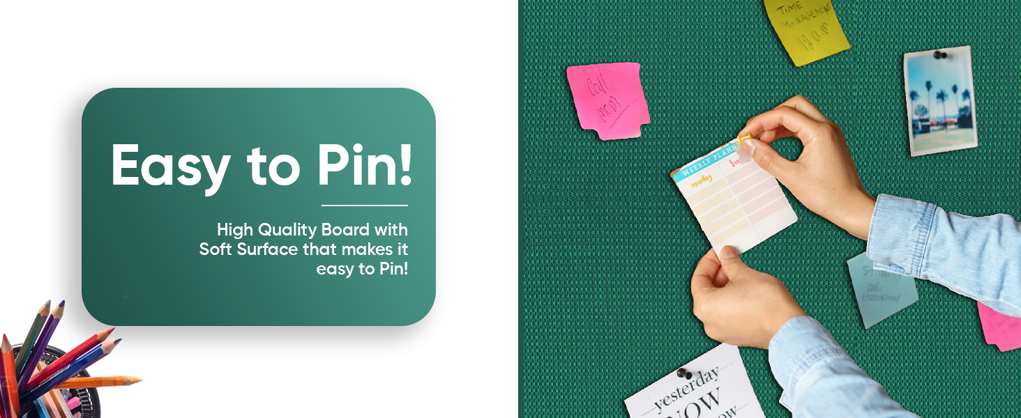 The YAJNAS 2x1.5 Feet Premium Notice Pin-up Board combines a compact 58.5x41 cm size with a durable alloy aluminium frame and a premium velvet flocked surface. Designed for office, school, and home use, its self-healing softboard core and weatherproof ABS corners ensure long-lasting performance while adding a stylish green accent to your space.