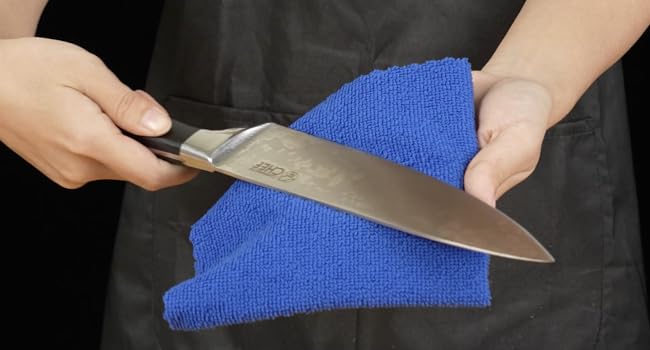 This 8” chef knife with sharpener is a phenomenal bang for the buck!Extremely sharp right out of the box.Its full tang includes the tail “cap” and the bolster.The G10 handle with 3 rivets is super smooth and comfortable in my medium sized hands.Its fairly heavy weight gives it a rock solid feel for great control over an extended time of use.The sharpener is a wonderful bonus item.I wouldn’t hesitate to rate this 5 stars but, I have to reduce that to 2 stars because as the picture shows, it does have serious manufacturing flaws on the blade.There are a substantial number of what appear to be “brushing” gouges on the blade, the deepest gouges being near the tip.Of greater concern is the blunt (broken off?) tip of the blade. This is how it came from the manufacturer.I’ll attempt to sharpen it back to a point but, obviously, a customer shouldn’t have to try to repair a brand new beautiful knife.Perhaps quality control needs to be reevaluated…CHEF KNIFE REVIEW UPDATE - 11/18/22I’m changing my 2 STAR rating to 5 STARS. The HIGH QUALITY of this chef knife and now also the PHENOMENAL CUSTOMER SERVICE of this company truly rates more than 5 stars.Jon from Primo Brands went FAR BEYOND my expectations to make sure I’d be a satisfied customer. His excellent service is why I’ll gladly support Primo Brands in the future.