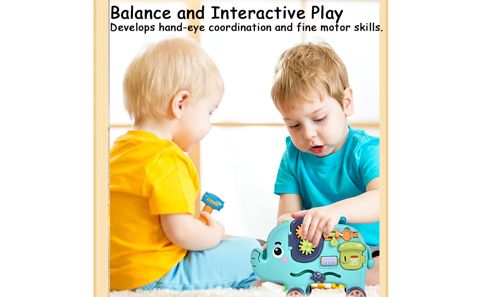 IDS Home Puzzle Elephant Multifunctional car, Baby and Toddler Hammering Toy, Montessori Toys for Children Over 18 Months, Gifts for Boys and Girls