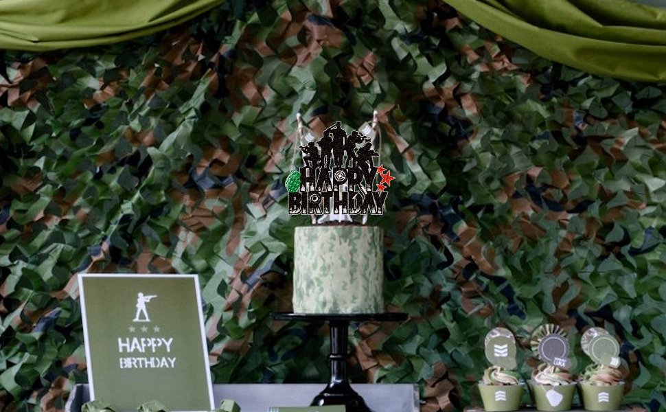 Military Happy Birthday Cake Topper Black Glitter Gun Army Soldier | Desertcart France