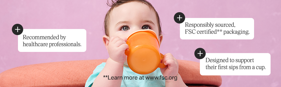 Our health visitor recommended these ones. Great for babies to hold on to - my girl started with them at 6months and picked it up properly on first attempt (took her a little longer to figure out how far to tip it back). It's free flowing so it takes some getting used to. Great size handles and is lightweight so it's easy for them to drink from. Never had a problem with leaks except for when I've forgotten to put the spout fully down. It also works great as an open cup once baby gets a hang of it.