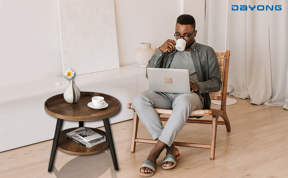 The DAYONG 2-Tier Round End Table combines modern minimalist design with practical double-layer storage. Crafted from durable 25mm density board and supported by corrosion-resistant 32mm carbon steel legs, it offers a stable, space-saving solution perfect for living rooms, bedrooms, or small spaces. Its 48cm height and curved desktop with raised edges ensure both style and functionality, while non-slip feet protect your floors and keep the table steady. Easy to assemble and maintain, this walnut-finish accent table is a must-have for the organized, design-conscious professional.