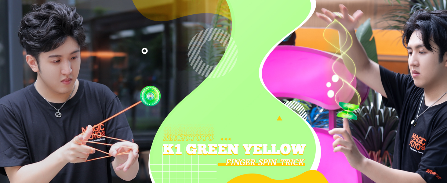 MAGICYOYO Responsive Yoyo K1 for Kids Beginners, Plastic Yoyo with Storage Bag, Glove, 12 Replacement Strings (Green, Yellow)