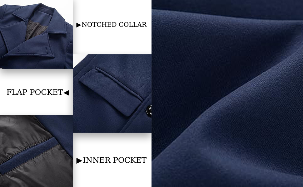INVACHIMen's Wool Blend Long Trench Coat Double Breasted Notched Lapel Peacoat Windproof Overcoat With Pockets