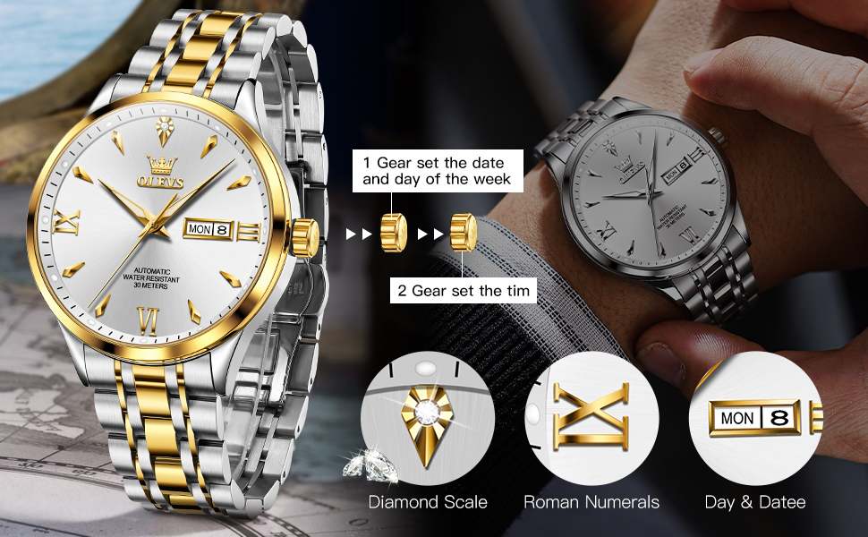 Olevs Automatic Watches For Men Self Winding Mechanical Wristwatch Luxury | Desertcart France