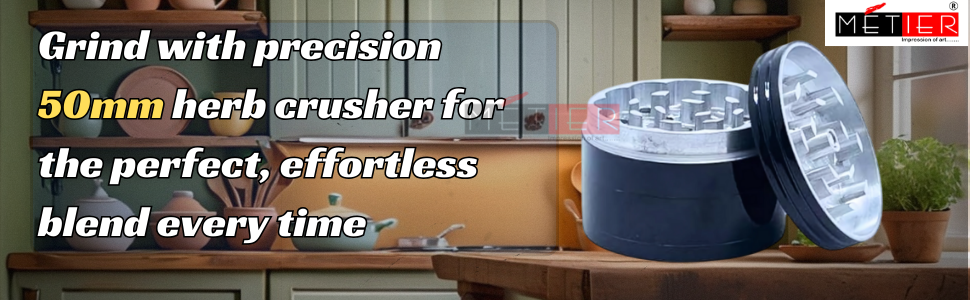 The METIER® Crusher 50mm Grinder is a sleek, 4-piece manual herb and spice grinder crafted from durable aluminum. Compact yet powerful, it efficiently crushes herbs, spices, ginger, and garlic with sharp teeth, making it an essential tool for millennial professionals seeking to elevate their culinary creations with ease and style.